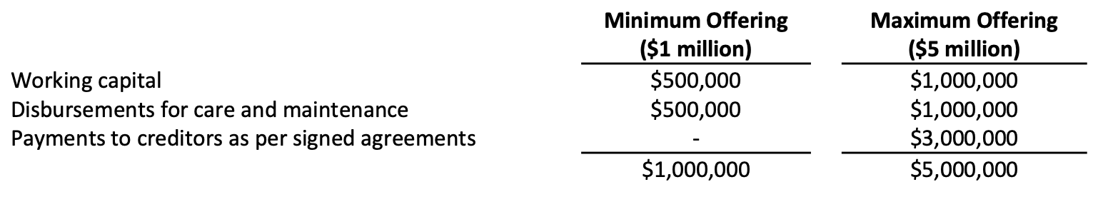 Use of proceeds of the Offering