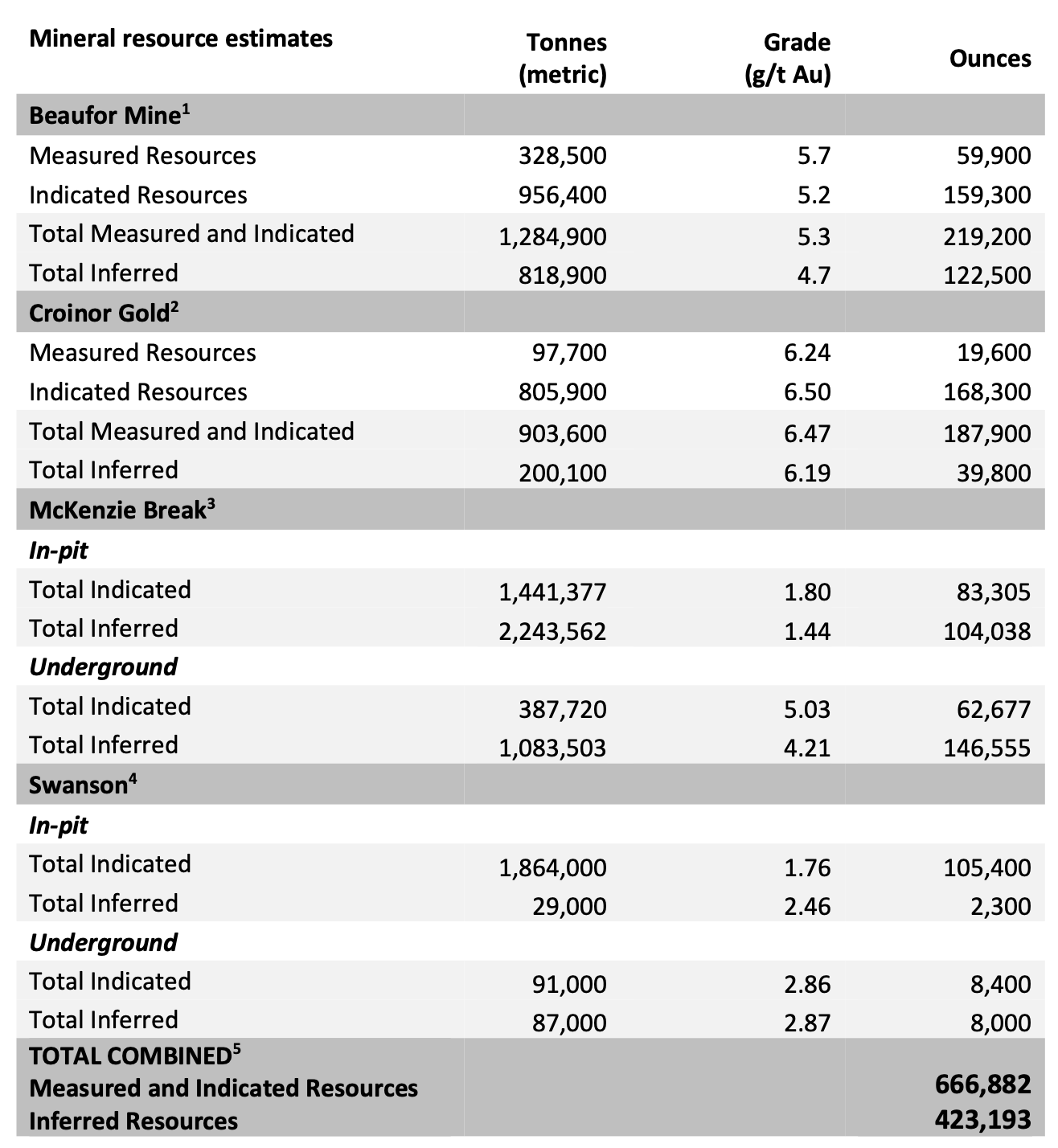 1 Source: NI 43-101 Technical Report and Mineral Resource Estimate for the Beaufor Mine Project, October 13, 2021, Val-d’Or, Québec, Canada, Charlotte Athurion, P. Geo., Pierre-Luc Richard, P. Geo., and Dario Evangelista, P. Eng., BBA Inc.