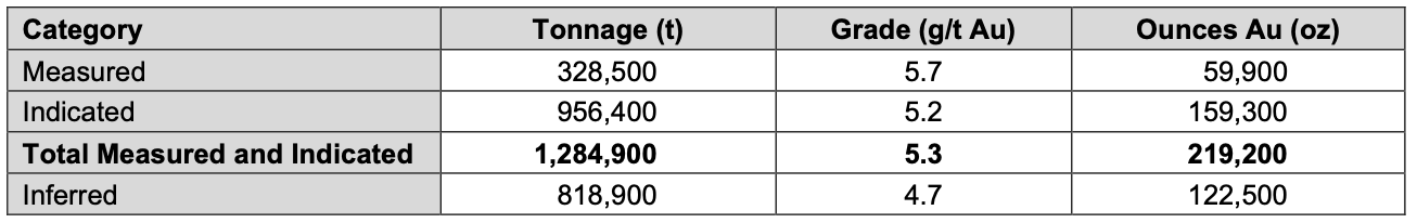 Table 1: 2021 mineral resource estimate for the Beaufor Mine