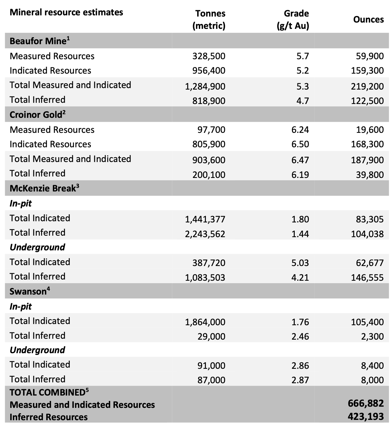 1 Source: NI 43-101 Technical Report and Mineral Resource Estimate for the Beaufor Mine Project, October 13, 2021, Val-d’Or, Québec, Canada, Charlotte Athurion, P. Geo., Pierre-Luc Richard, P. Geo., and Dario Evangelista, P. Eng., BBA Inc.