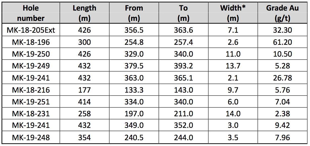 Here below are two tables that each show the top 10 intercepts from the McKenzie Break drilling programs since Monarch acquired the property in December 2017, and from drilling programs before acquiring the property based on metal factor (grade times length), which show the extent of the high-grade potential on this property.