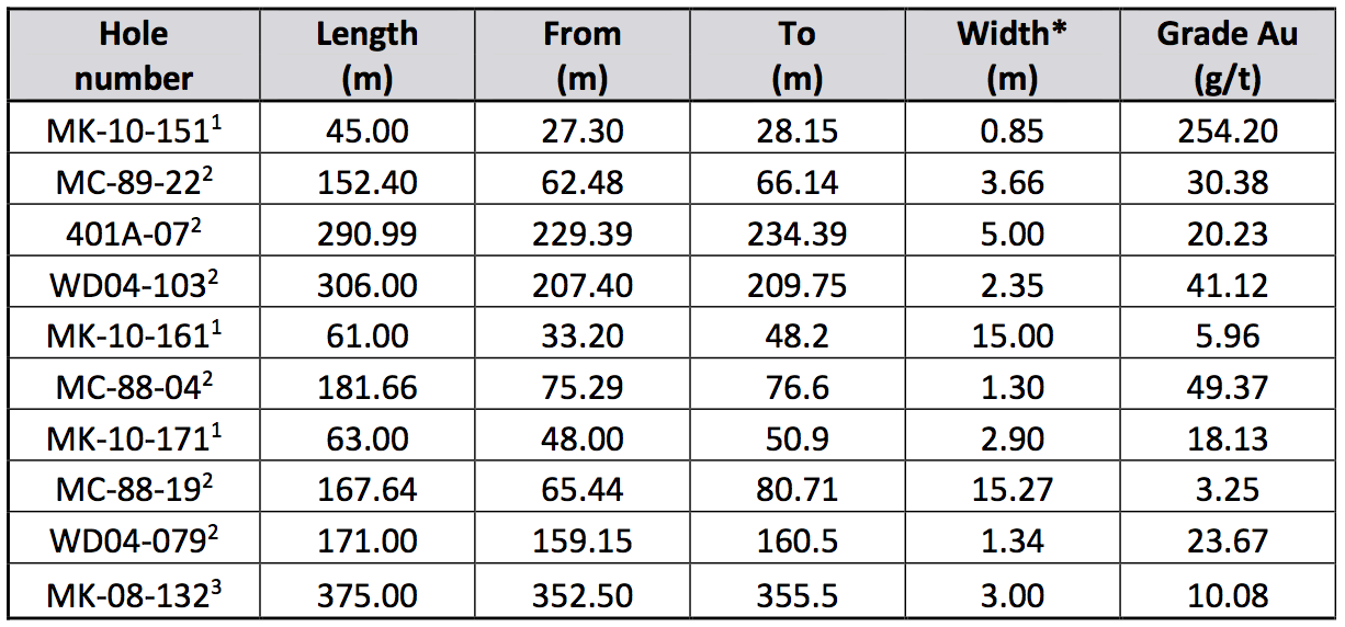 Top 10 historic McKenzie Break drilling results before acquiring property