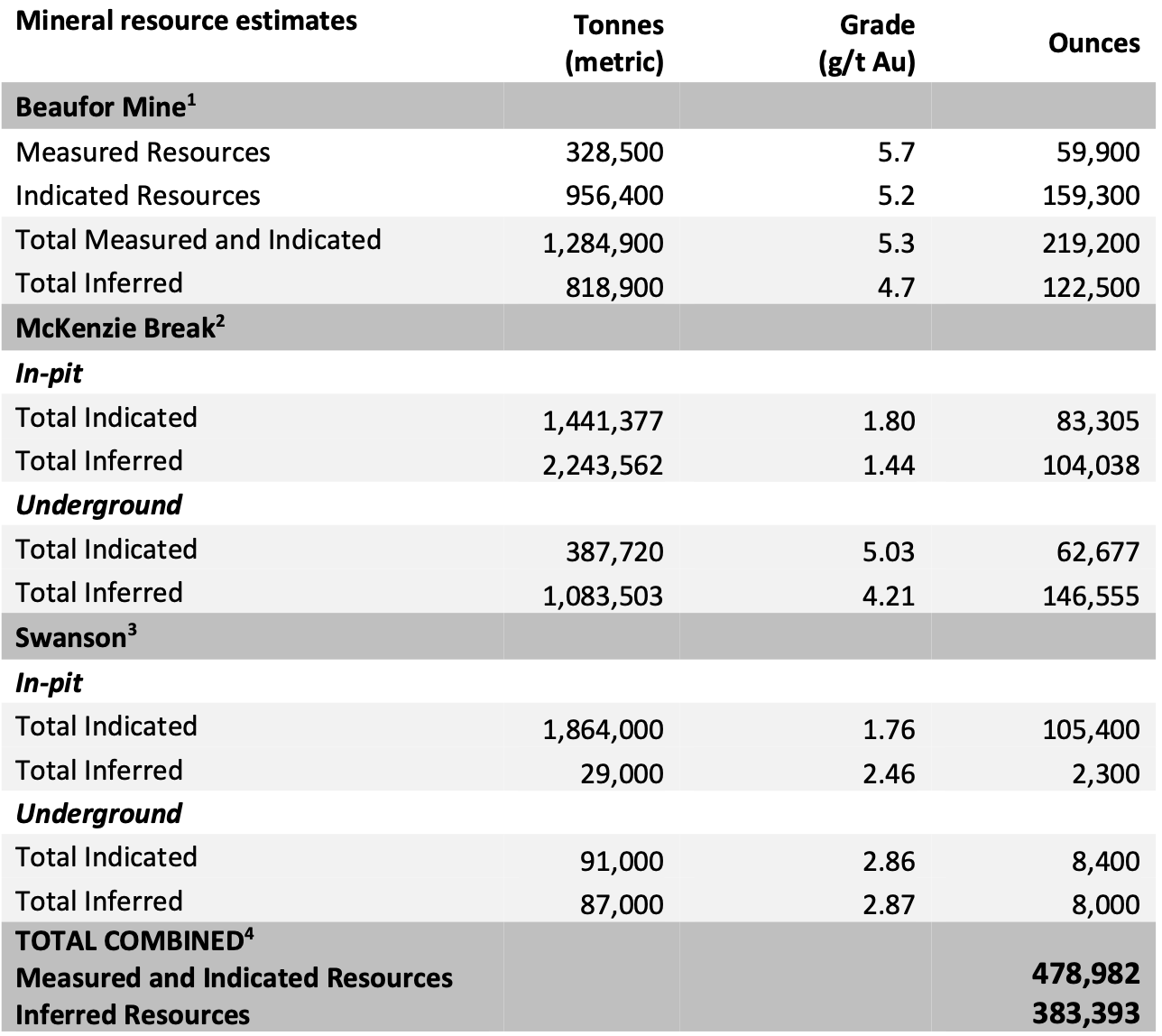 1 Source: NI 43-101 Technical Report and Mineral Resource Estimate for the Beaufor Mine Project, October 13, 2021, Val-d’Or, Québec, Canada, Charlotte Athurion, P. Geo., Pierre-Luc Richard, P. Geo., Dario Evangelista, P. Eng., BBA Inc.