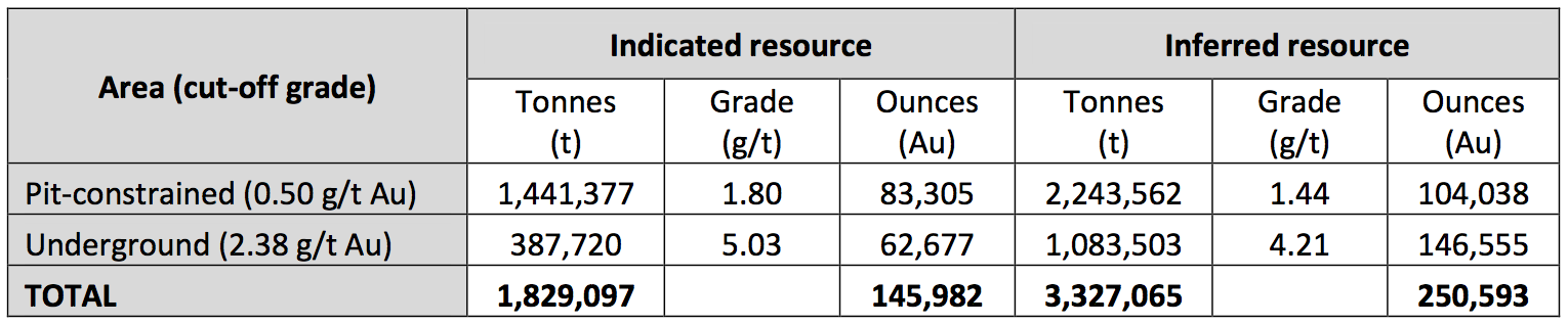 Table 1 presents the combined resources (in-pit and underground) by category for the McKenzie Break deposit at the selected cut-off grades.