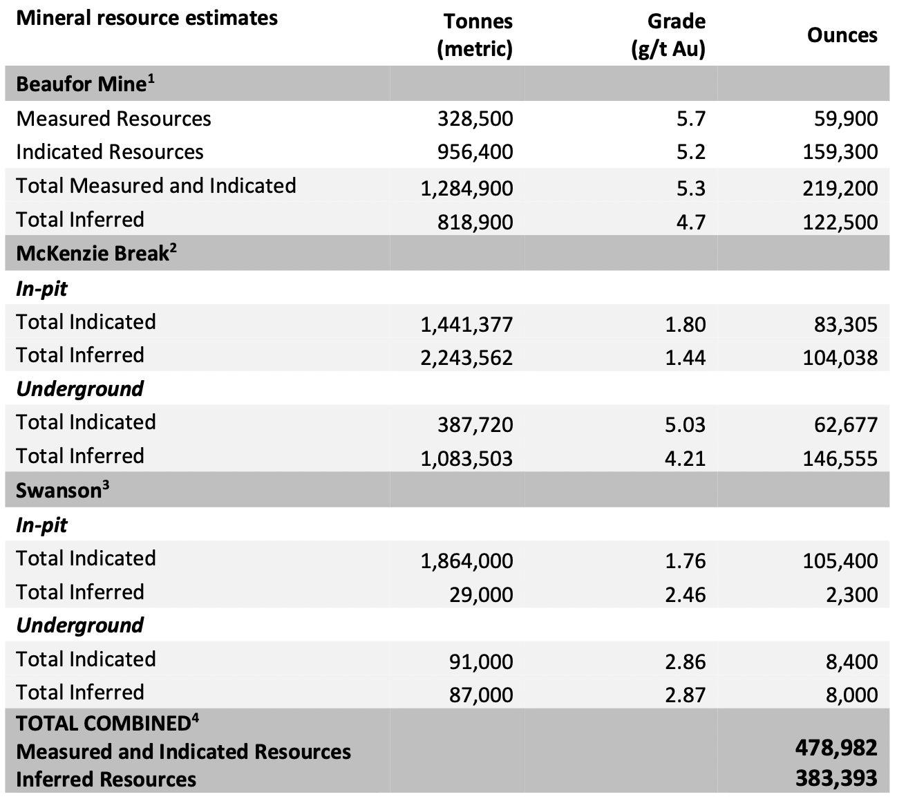 1 Source: NI 43-101 Technical Report and Mineral Resource Estimate for the Beaufor Mine Project, July 23, 2021, Val-d’Or, Québec, Canada, Charlotte Athurion, P. Geo., Clovis Auger, P. Geo., and Dario Evangelista, P. Eng., BBA Inc.