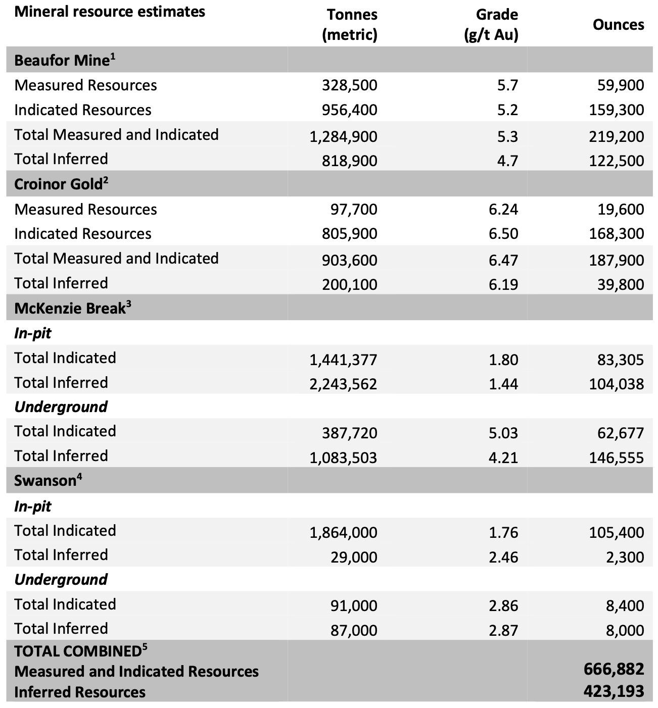 1 Source: NI 43-101 Technical Report and Mineral Resource Estimate for the Beaufor Mine Project, October 13, 2021, Val-d’Or, Québec, Canada, Charlotte Athurion, P. Geo., Pierre-Luc Richard, P. Geo., and Dario Evangelista, P. Eng., BBA Inc.