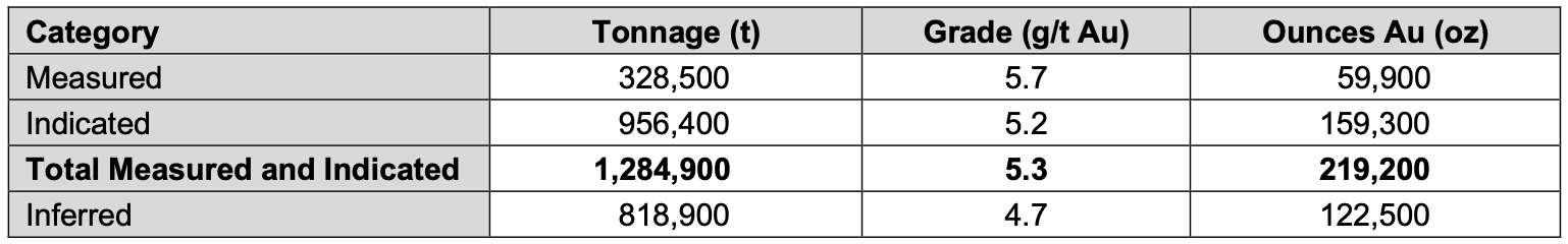 Table 1: 2021 mineral resource estimate for the Beaufor Mine
