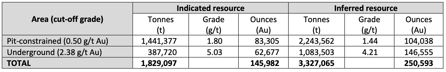 Table 1: 2021 MRE for the McKenzie Break deposit