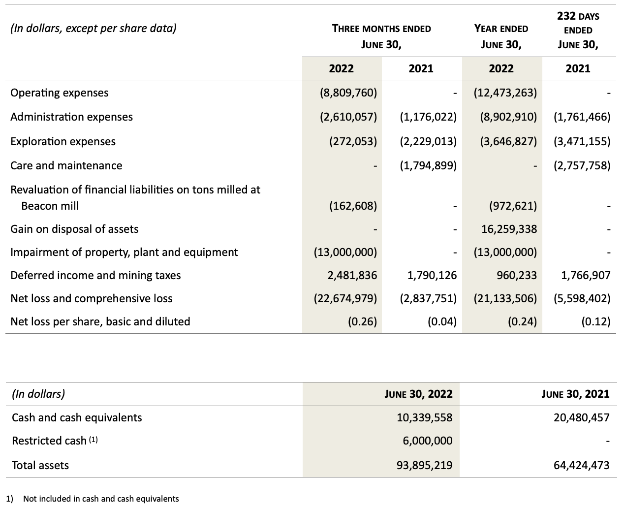 Montreal, Quebec, Canada, September 28, 2022 – MONARCH MINING CORPORATION (“Monarch” or the “Corporation”) (TSX: GBAR) (OTCQX: GBARF) reported its results today for the fourth quarter and year ended June 30, 2022. Amounts are in Canadian dollars unless otherwise indicated.