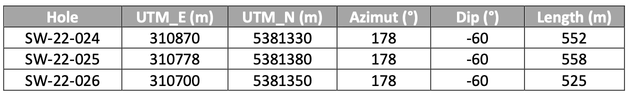 The most recently received assay results are for three holes, including those farthest to the northeast (SW-22-024) and north (SW-22-025), which were drilled to test the down-plunge extension to the northeast (see Figure 1, Figure 2 and Figure 3).